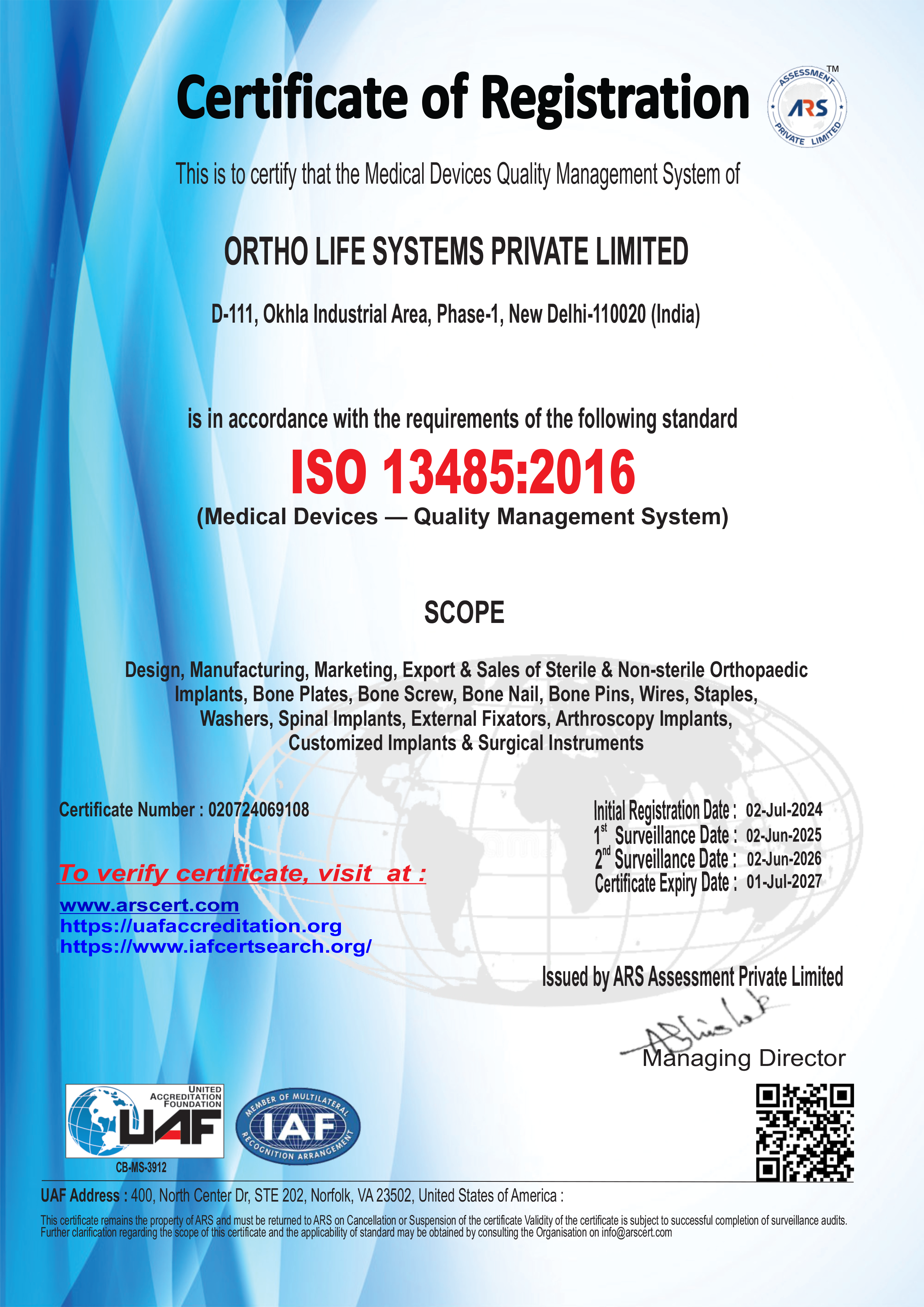 A CE, EN ISO 13485:2016, WHO:GMP & ISO 9001:2015 certified company